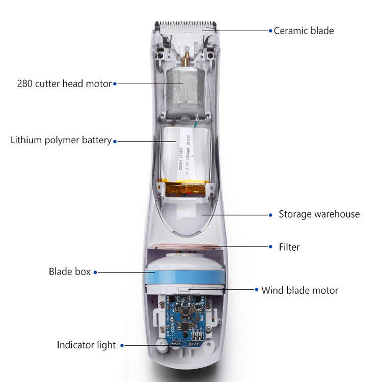 Hair Collection - Integrated suction system for convenient hair cleanup.